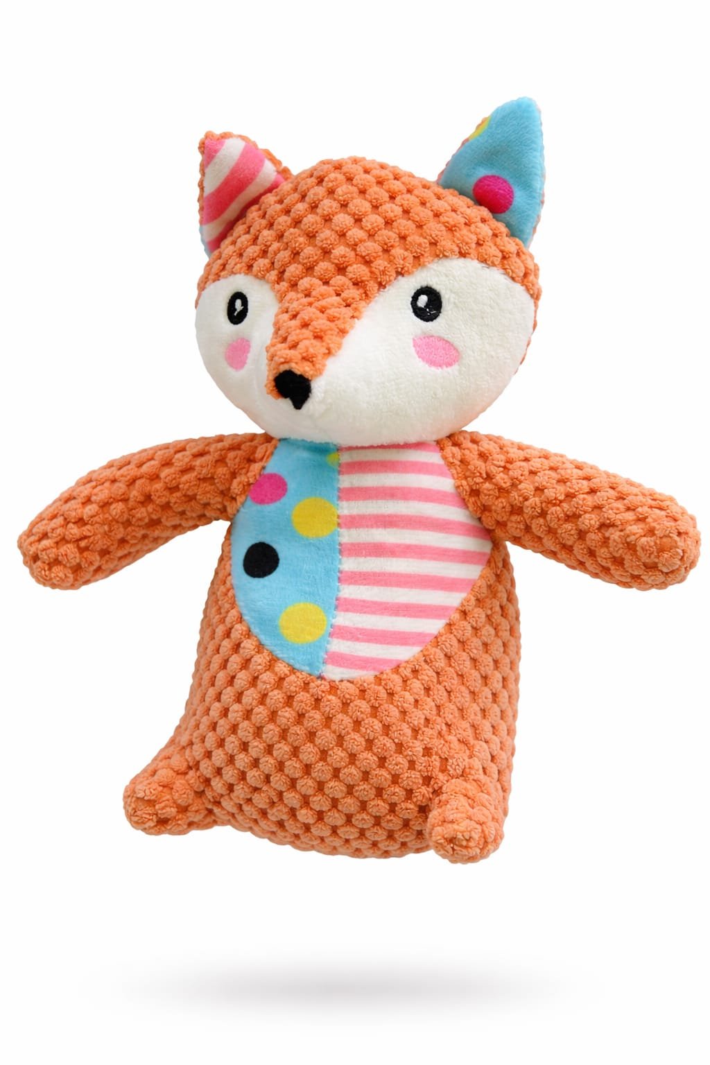 O brinquedo de pelúcia em formato de raposa foi desenvolvido para estimular a brincadeira e proporcionar momentos de entretenimento e aconchego ao seu cão.