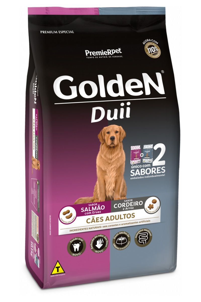 Cordeiro e Arroz Farinha de vísceras de frango, farinha de carne e ossos de ovinos, grão de milho*, quirera de arroz, farelo de arroz desengordurado, grão de linhaça, polpa desidratada de beterraba, gordura de frango, cloreto de potássio, cloreto de sódio, ácido propiônico, bentonita, BHA (Butilhidroxianisol), BHT (Butilhidroxitolueno), extrato de yucca (0,04%), hexametafosfato de sódio (0,10%), hidrolisado de fígado de aves e suíno, vitamina A, vitamina B1, vitamina B2, vitamina B3, vitamina B5, vitamina B6, vitamina B7, vitamina B9, vitamina B12, vitamina C, cloreto de colina, vitamina D3, vitamina E, vitamina K3, iodeto de cálcio, selenometionina hidroxi análoga, sulfato de cobre pentahidratado, sulfato de ferro, sulfato de manganês, sulfato de zinco monohidratado. *Contém milho transgênico (espécies doadoras de gene: Bacillus thuringiensis e/ou Agrobacterium tumefaciens e/ou Streptomyces viridochromogenes e/ou Zea mays).