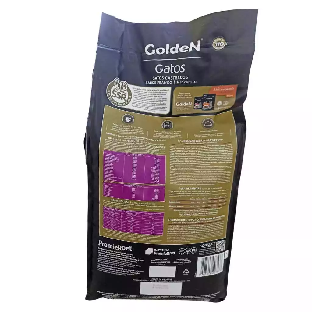 Especialmente formulada para atender às necessidades dos gatos castrados, GoldeN Gatos Castrados Frango auxilia na prevenção da obesidade e no cuidado com o trato urinário, garantindo uma nutrição ótima e saudável.