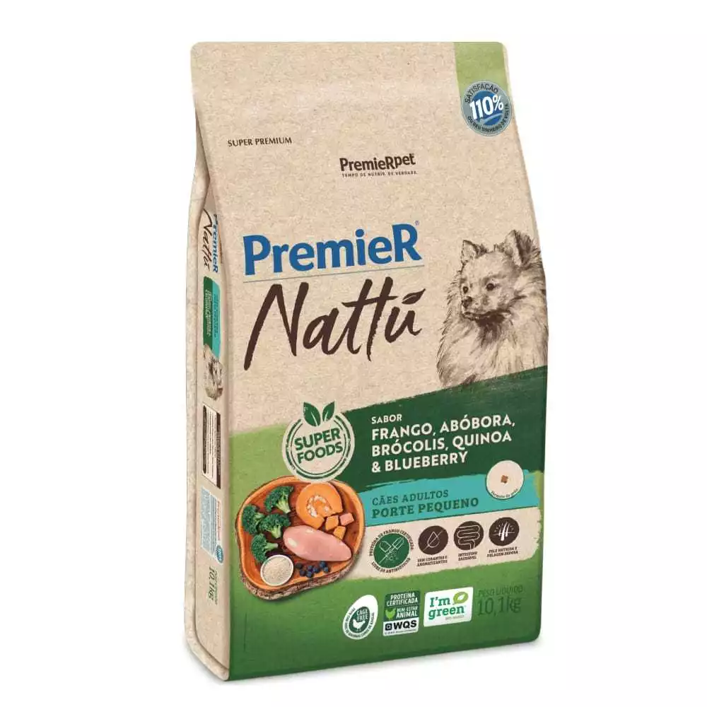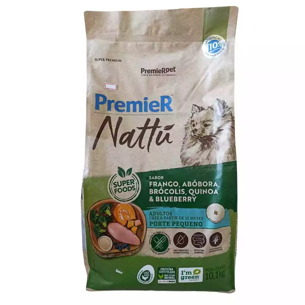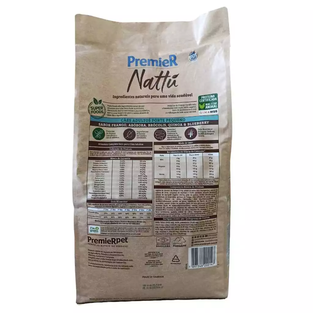 Com uma fórmula sem corantes e aromatizantes, a Ração Seca PremieR Pet Nattú Abóbora para Cães Adultos de Pequeno Porte é recomendada para a alimentação de cães adultos de pequeno porte e traz em sua base de ingredientes Frango, Abóbora, Brócolis, Quinoa e Blueberry, itens de alta densidade nutricional, que oferecem muitos nutrientes e poucas calorias, proporcionando uma dieta mais equilibrada para seu cão. Uma exclusividade deste alimento são os ovos utilizados na formulação, provenientes do sistema de criação Cage Free, no qual as aves possuem liberdade de movimento, com acesso a ninhos, permitindo assim sua total locomoção.