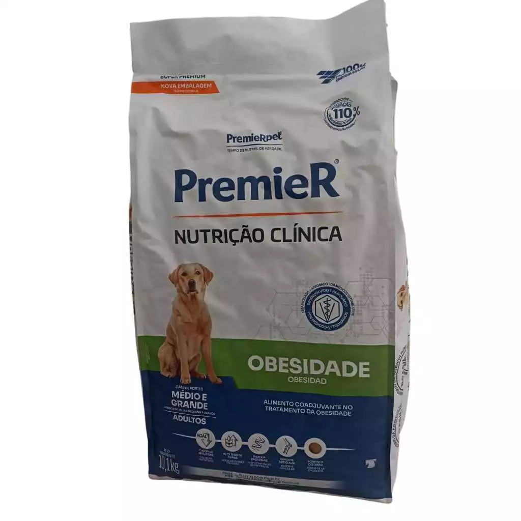 PremieR Nutrição Clínica Cães Obesidade é um alimento auxiliar ao tratamento da obesidade em cães adultos de portes médio ou grande.