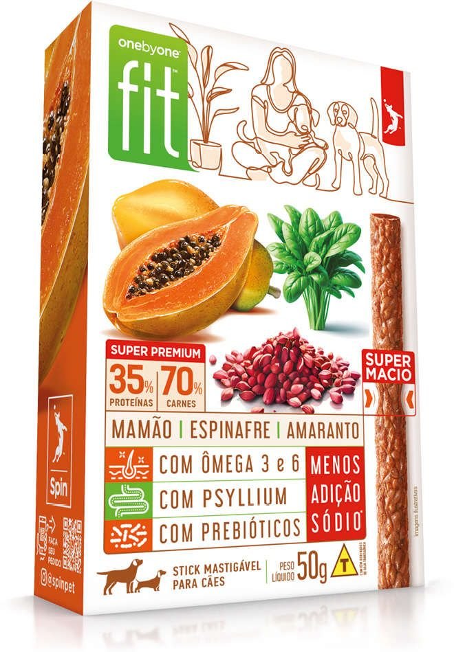 Spin Onebyone Fit Petisco Cães Cachorro Pet Snacks Pêssego, Brócolis e Grão de Bico 50g cada caixa